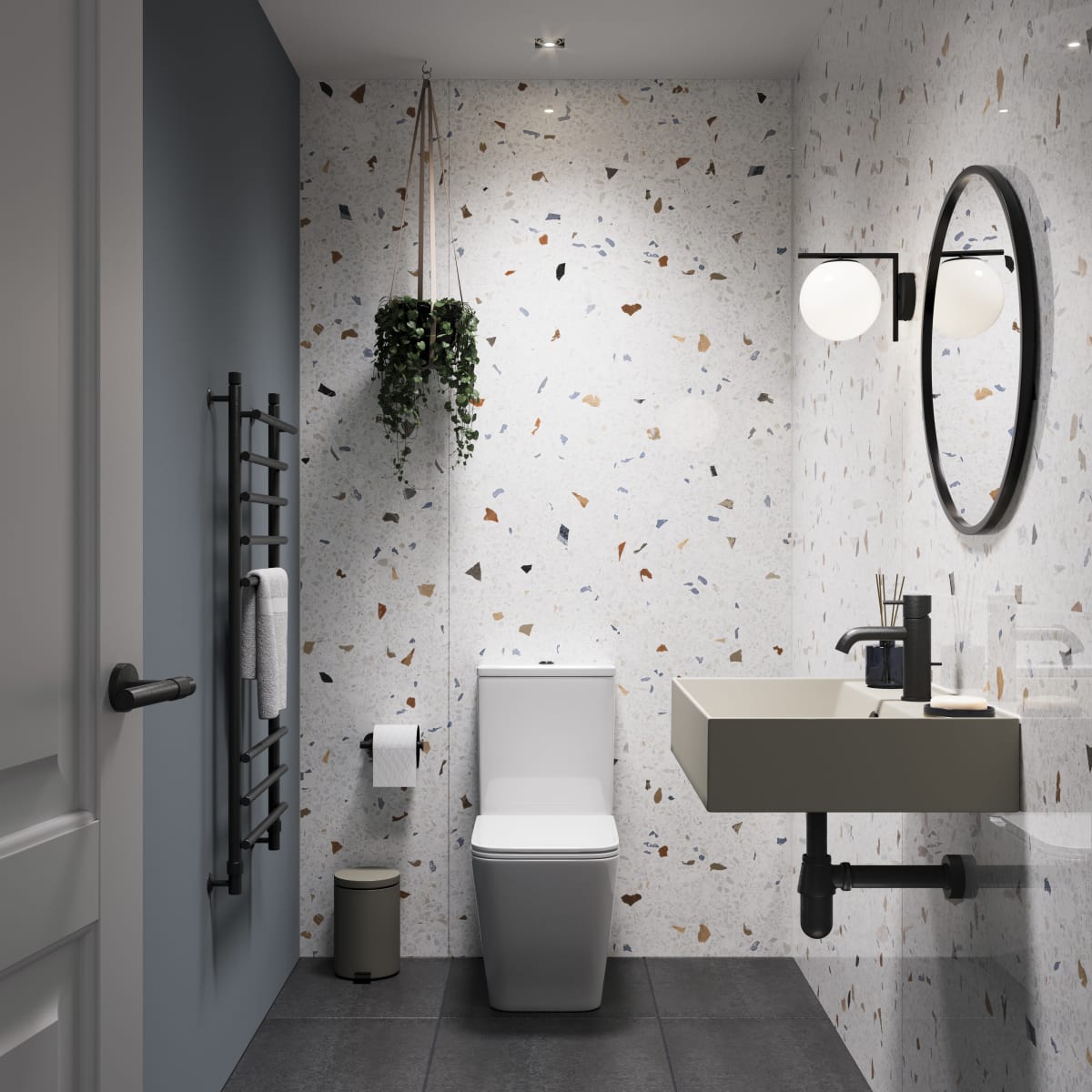 Convert your walls using our reinvented Terrazzo - a revived and popular classic. This engaging design creates a statement in any bathroom. Showerwall Disclaimer: Colours shown on this website may vary from the actual product due to photographic, printing, and digital display differences. Natural stone decors are designed to replicate natural variation and may differ between panels. Showerwall reserves the right to amend product specifications at any time without prior notice. E&OE.