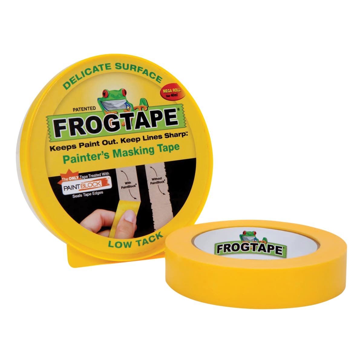 Shurtape FrogTape Delicate Surface Masking Tape 41m x 36mm (L x W), is manufactured from polymer that forms a micro barrier. Micro barrier seals the edges of the tape while reacting with the emulsion paint. Low tack painter's masking tape mainly used on freshly painted surfaces, wallpaper and newly plastered walls.