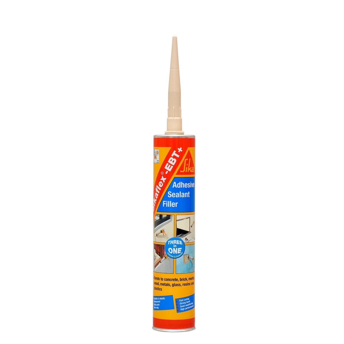 Sikaflex EBT Plus Adhesive Sealant is both adhesive and a filler that could be used for multiple purposes, making it ideal for bonding cabinets, shower trays, mirrors and ceramics. The product is used for filling, sealing internal and external cracks, gaps around window or door frames and bonds to all common building materials as it is permanently elastic. The sealant is applied using a sealant gun firmly against gap sides to ensure good adhesion.