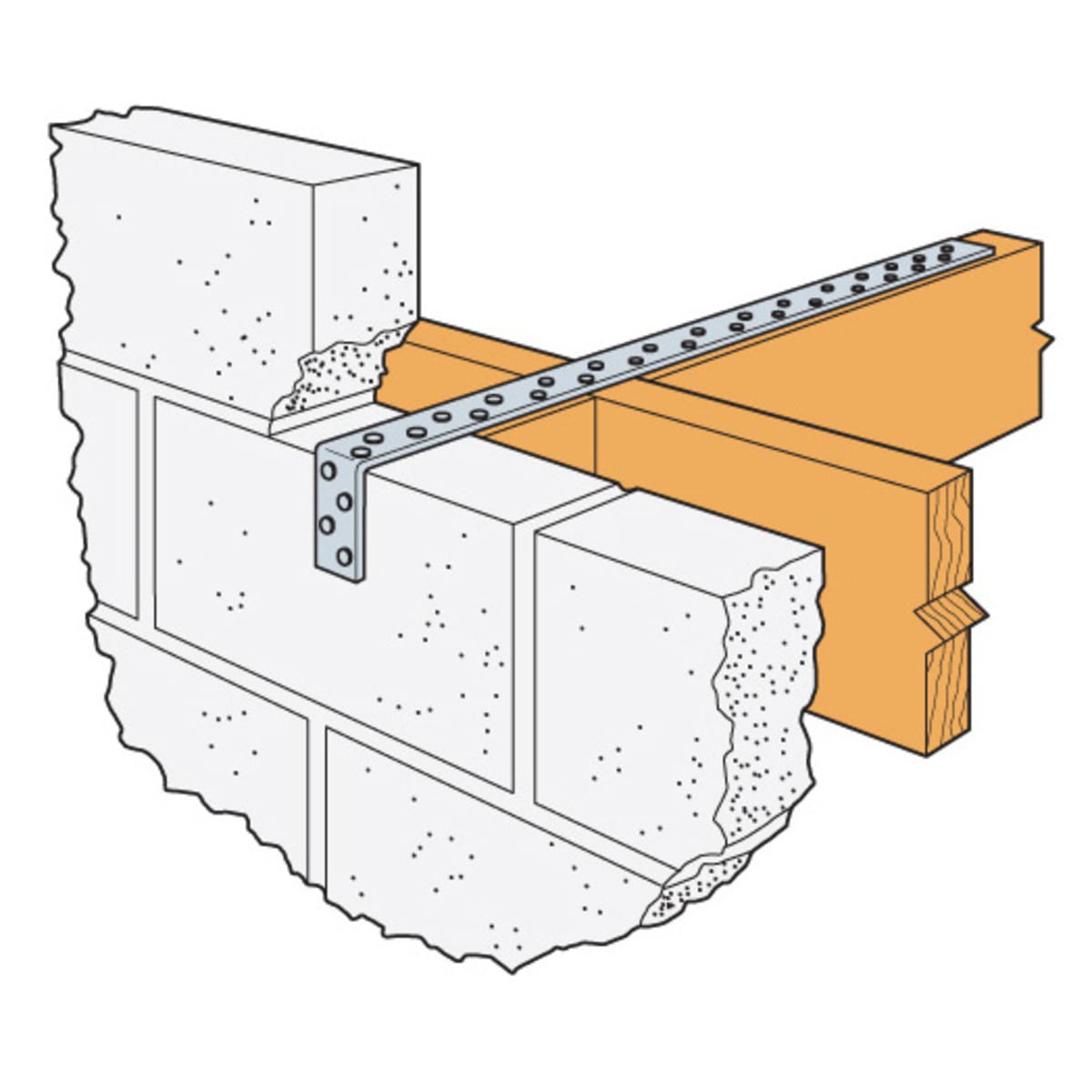 The Simpson Strong-Tie Strap Bent is used to provide horizontal restraint for connecting floor systems and timber roof to the masonry wall. The product, available in silver colour, measures 1000 x 30 x 5mm (L x W x H). The strap is bent at 150mm, providing support to the floor or the roof attached. The number of pre drilled holes in the restraint provides strength and security with the fittings. It complies to the Building Regulations, BS 5268 Part 3. Restraint Straps parallel should be fixed to the masonry wall and be at least 1.2m long. Made in the United States, this bent is used in both commercial and domestic domains. Simpson Strong-Tie Company manufactures and distributes structural products for buildings. Simpson Strong-Tie Company has a strategic alliance with Bosch Power Tools. The company was founded in 1956 and is based in Pleasanton, California.