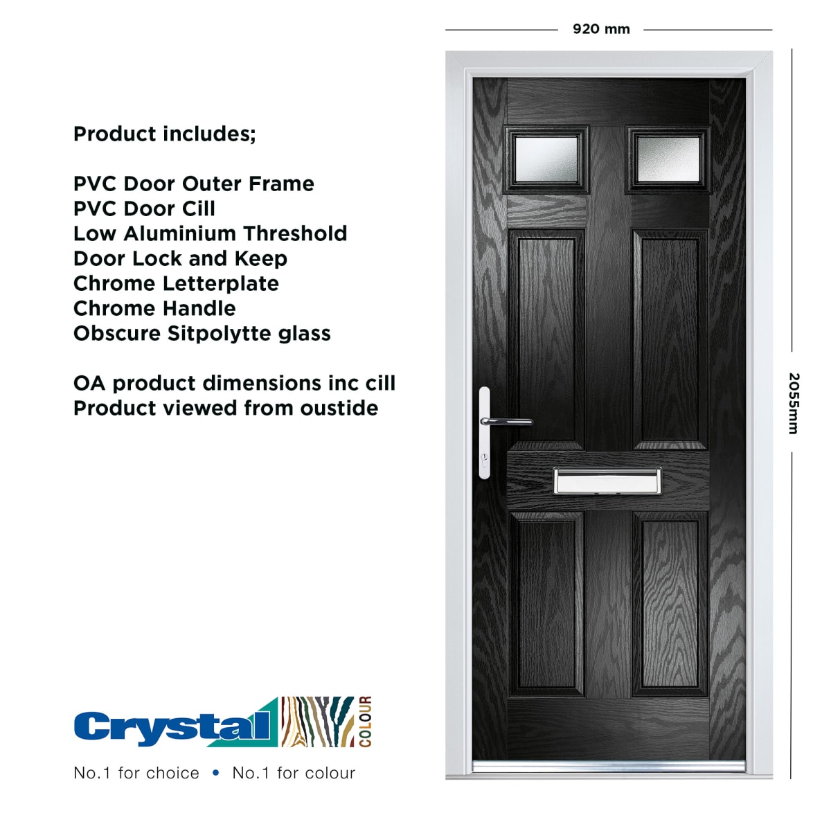 Doors & Joinery > External Doors > External Composite Doors > Crystal Six Square Composite Door 920 x 2055mm Two Glass Right Hand Obscure Glazed Black