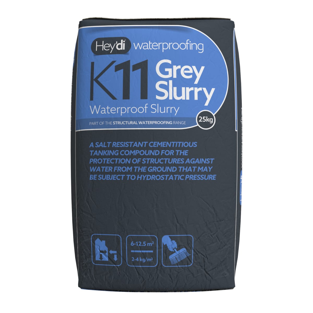 Sovereign Hey’di K11 is a salt resistant cementitious tanking compound for the protection of structures against water from the ground and which maybe potentially subject to hydrostatic pressure. K11 can be used on the external side of buildings below ground level where positive pressure exists, or on the internal (negative) side, without the need to build supporting walls.