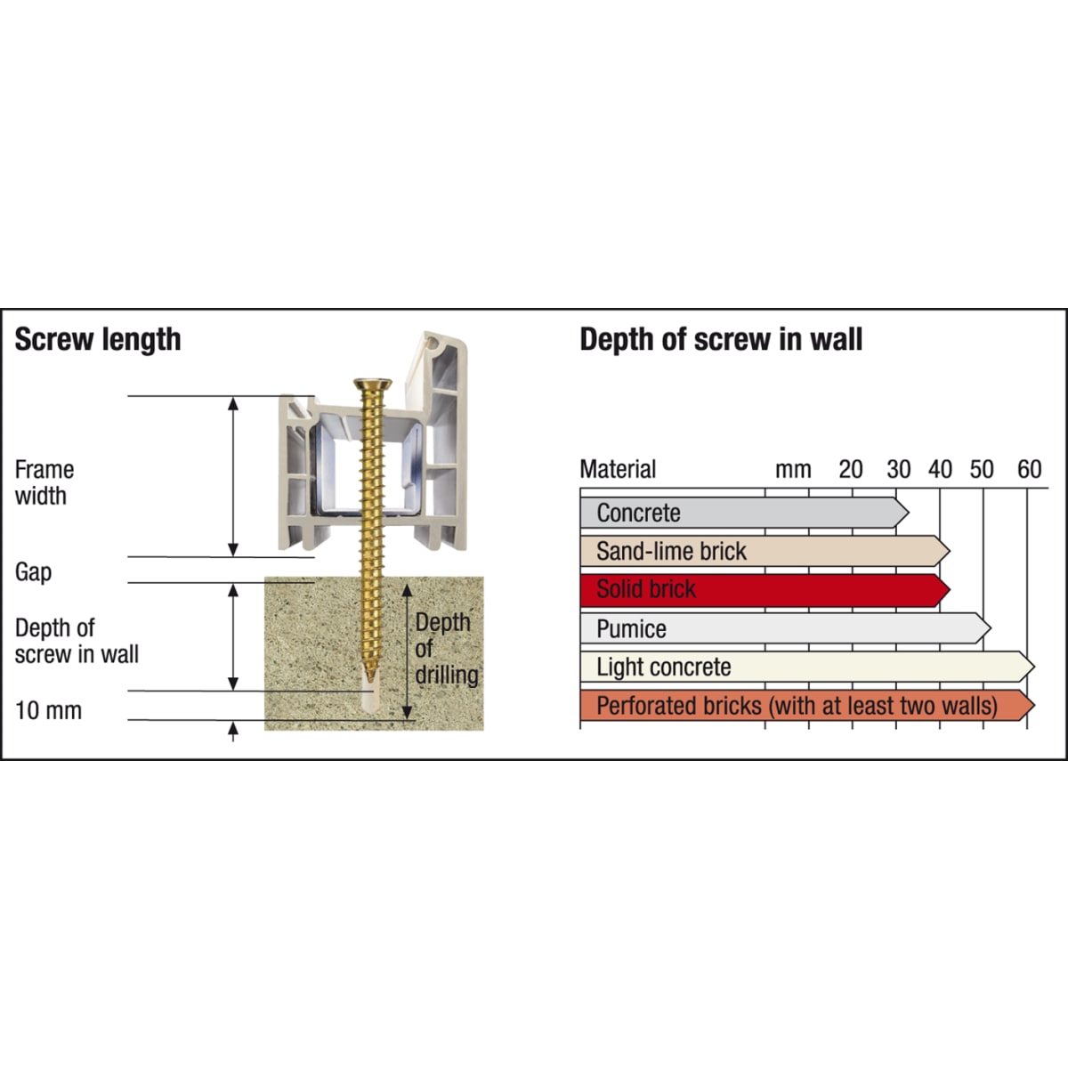 The SPAX RA Frame Anchor Screws 120 x 7.50mm (L x Dia) Chrome is made from galvanised steel material for improved longevity which makes it suitable for fixing it in stone, concrete or wood surfaces. It is a plug-free window and door frame fixer, which saves time and is ideal for securing gaps. The screws can be easily fixed in accurate position and can be used on wood, stone and concrete. The T-STAR plus bit recess gives a secure fit with better driving. The flat top of the anchor screw ensures that the screw fit perfectly into the predrilled holes and the heads don't protrude out of the surface awkwardly.