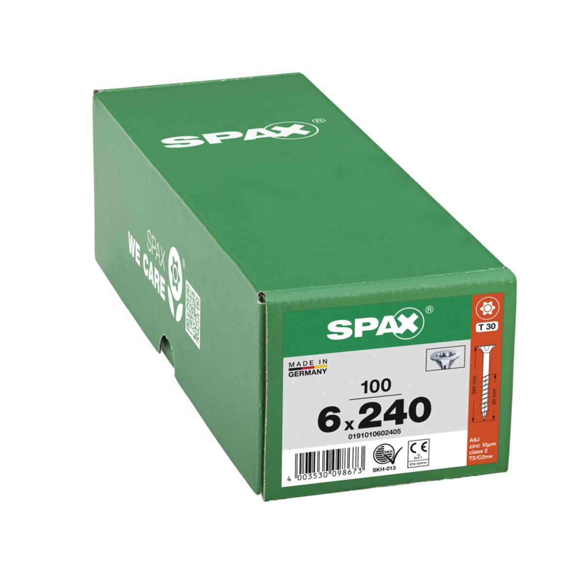 Tools & Fixings > Fixings & Fasteners > Screws > SPAX WIROX Coated Flat-Head Construction Screws T30 T-Star Plus Recess 6.0 x 240mm Box of 100