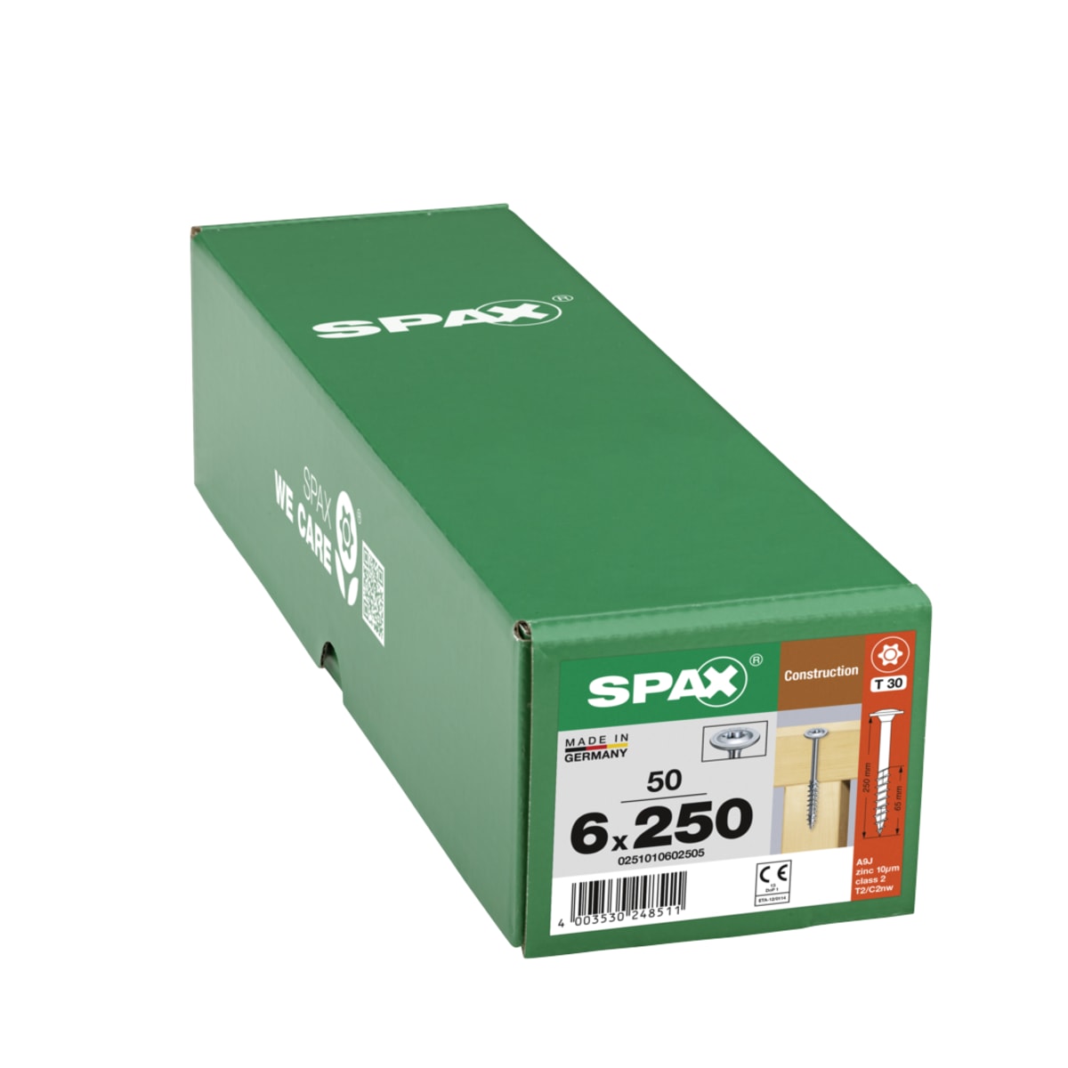 Tools & Fixings > Fixings & Fasteners > Screws > SPAX WIROX Coated Washer-Head Construction Screws T30 T-Star Plus Recess 6.0 x 250mm Pack of 50