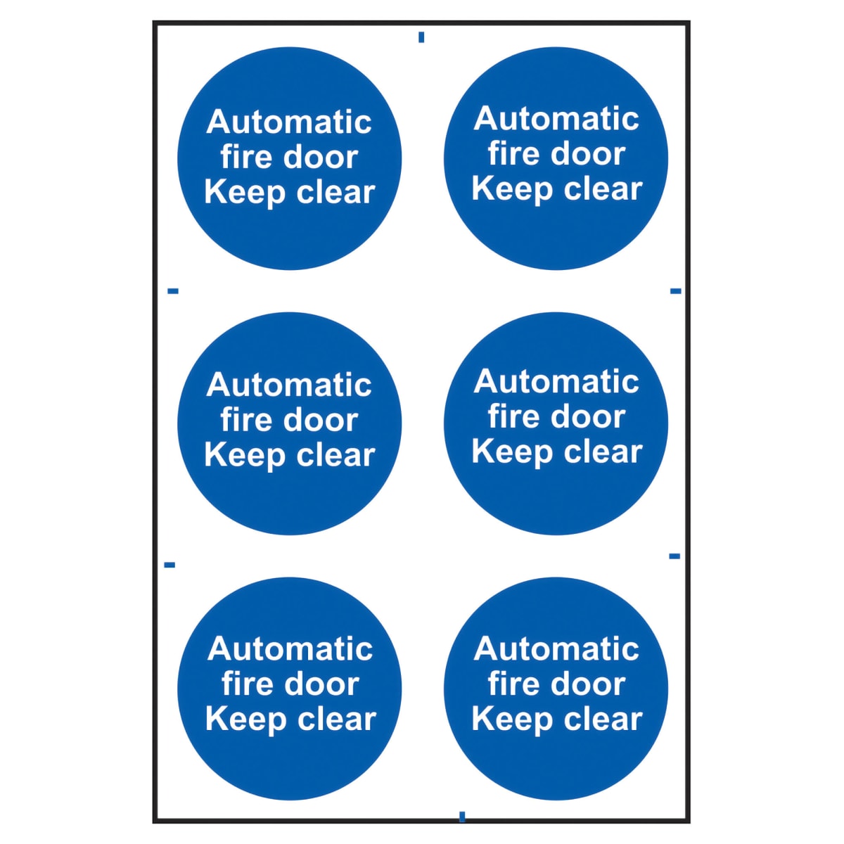 ‘Automatic Fire Door Keep Clear’ Sign 100mm x 100mm 6 Per Sheet