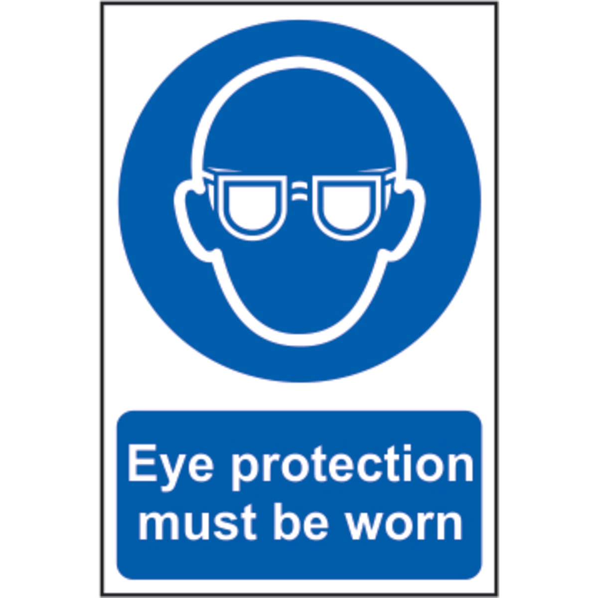 Eye Protection Must Be Worn' sign is a 200mm x 300mm mandatory sign made from self-adhesive semi-rigid PVC making it easy to apply to a clean dry surface. All signs conform to the BS EN ISO 7010 regulation, ensuring that all graphical safety symbols are consistent and compliant.