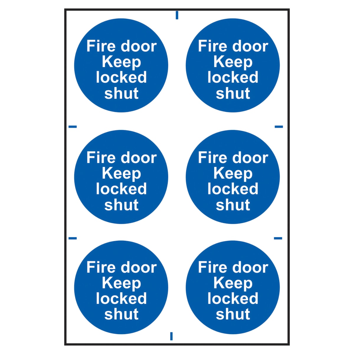 | Product Name | ‘Fire Door Keep Locked Shut’ Sign 100mm x 100mm 6 Per Sheet |