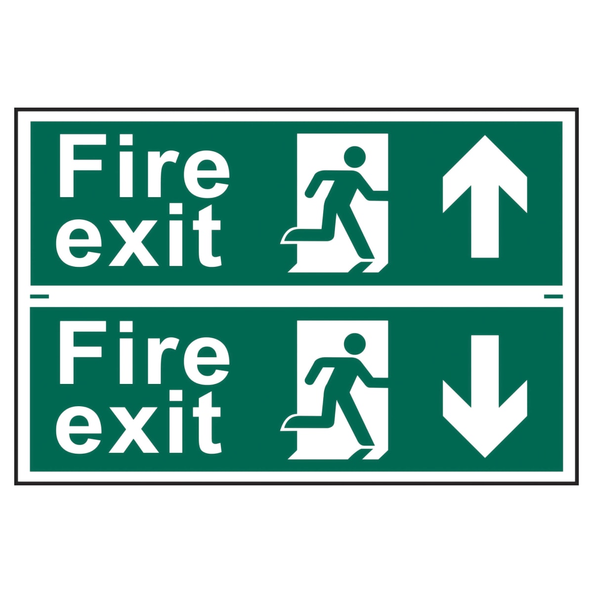 | Product Name | Fire Exit Man Running Arrow Up/Down' Sign 300mm x 100mm 2 Per Sheet |