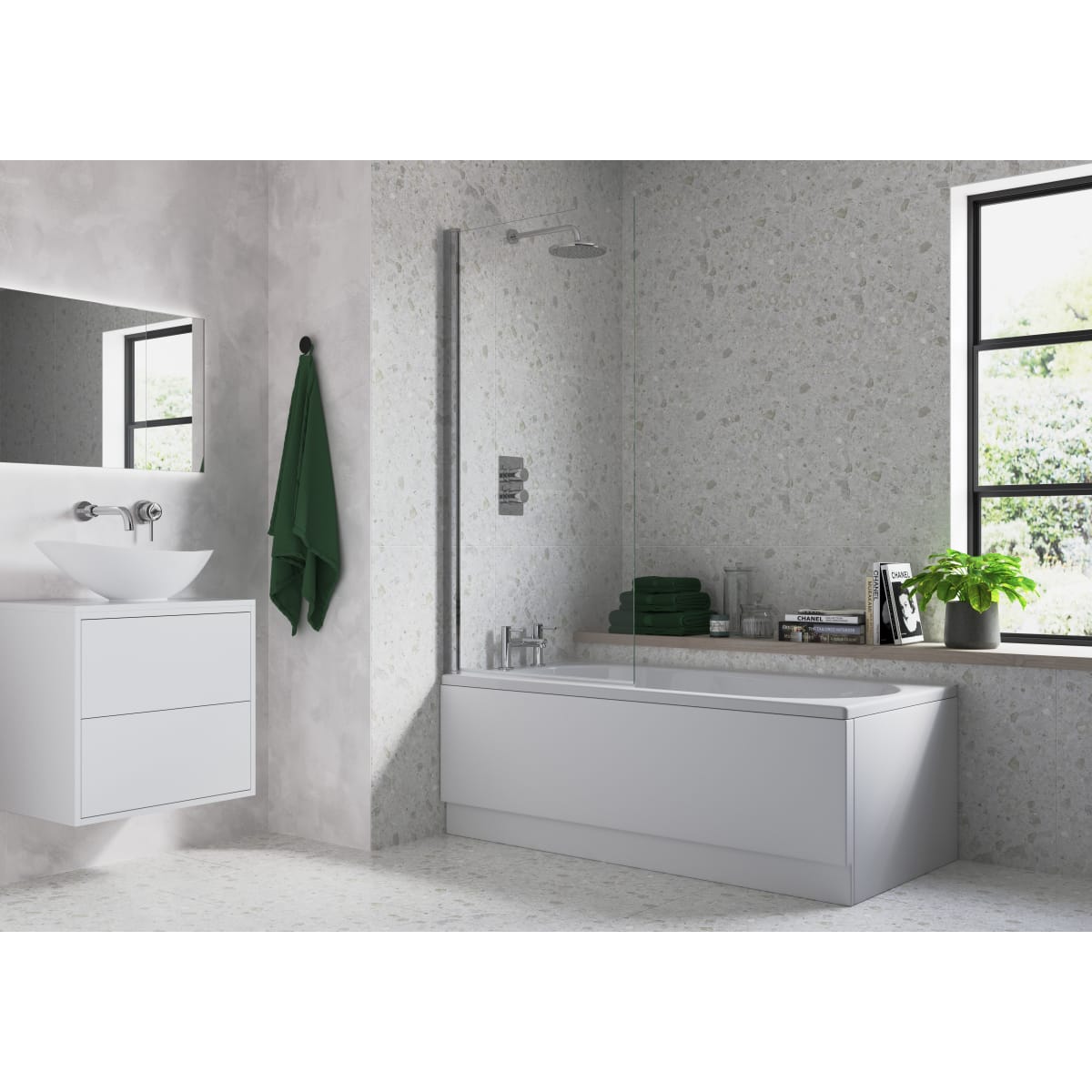 Square Bath Screen 6mm Chrome 800 x 1400mm : A sleek and durable bath screen made from toughened 6mm glass. Provides a stylish barrier to prevent water splashes, available in various finishes to match contemporary bathroom décor.