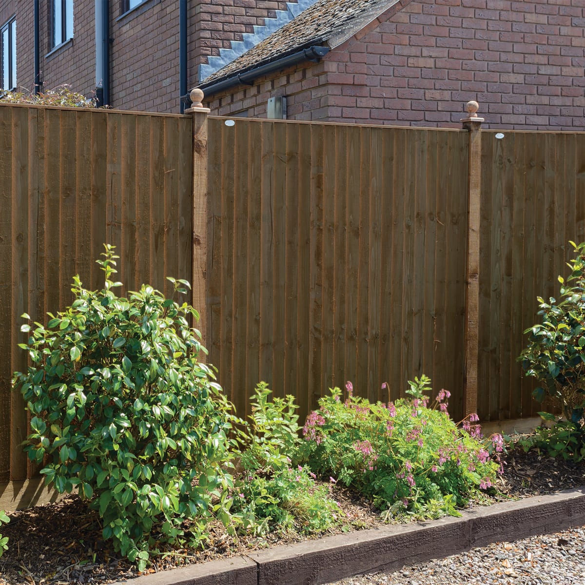 A heavy duty panel made with 100mm featheredge boards and capping rail fixed to a sturdy frame. The Standard Featheredge Panel is available in pressure-treated golden brown, pressure-treated dark brown or pressure-treated green to protect the timber from wood rot.