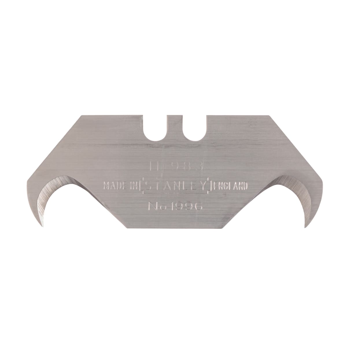 STANLEY 1996 Large Hook Blades 50 x 0.65mm (W x T) 5 Pieces is manufactured from steel making it rigid. These blades fit all STANLEY knives and are ideally used in the packaging industry for plastic sheeting.
