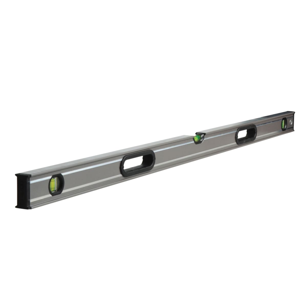 The Stanley FatMax Pro level has solid-block acrylic vials to provide an accuracy of 0.5mm/m in eight orientations. It has a large ergonomic rubber over-moulded hand grip for a sturdy grip. The level measures 1200mm in length and is lightweight making it easy to handle. The central vial is magnified for increased visibility while measuring level. The aluminium body has a machined smooth finish and level surface for accurate readings. The durable build quality of the product is upto 5 times stronger because of its box beam design. The end caps have decent shock absorption capabilities to ensure the level is protected from fall damage.