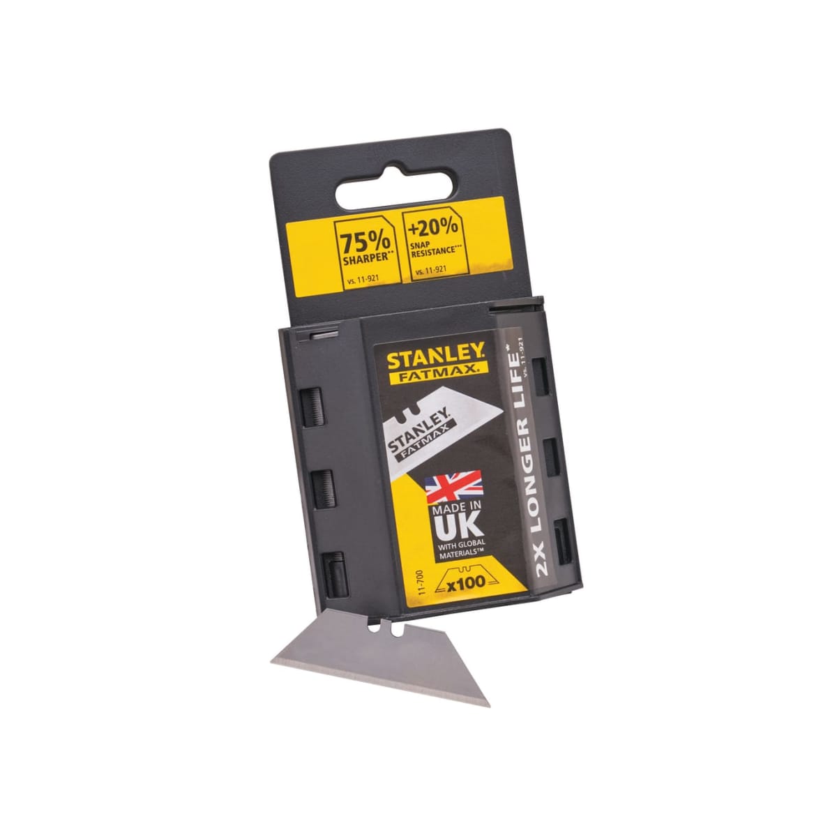 The FatMax® Utility Blades are 20% stronger, 75% sharper and offer twice more life than a traditional Stanley blade, and being the first ever induction hardened blade, they come with a new blade geometry which provides more blade edge.