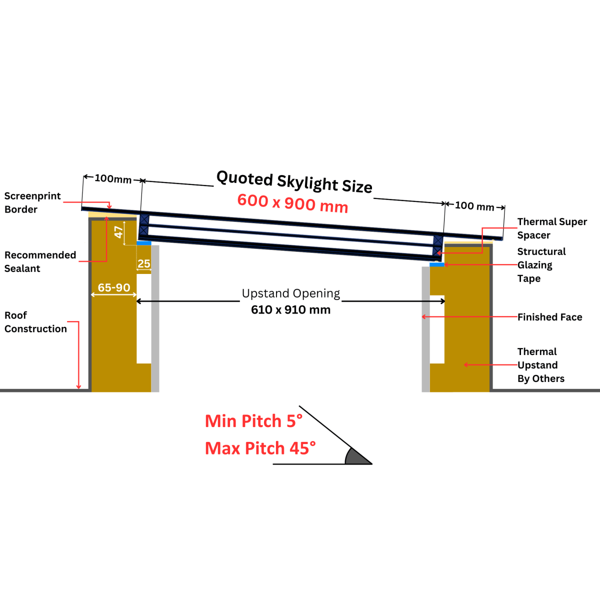 | Product Name | Sterling 600 x 900mm Frameless Triple Glazed Skylight for Flat / Pitched Roof |