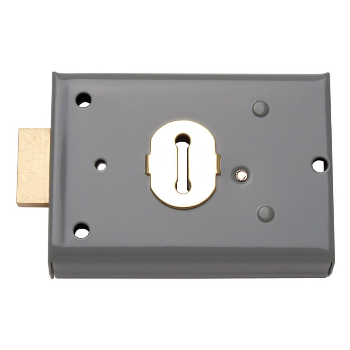Sterling Rim Deadlock 76 x 101mm (H x W) Grey is surface mounted budget rim deadlock with key operated deadbolt, suitable for wooden doors opening either way and ideal for sheds and outbuildings.