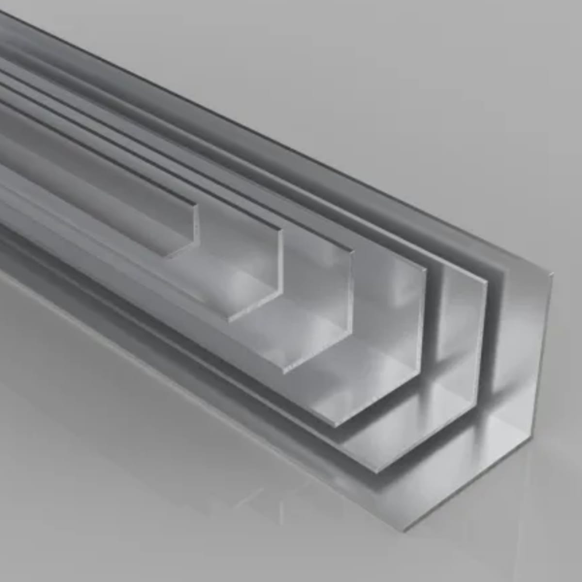 Aluminium Angle Edging in mill aluminium. Available in sizes 12 x 12 x 1.6mm, 19 x 19 x 1.6mm, 25 x 25 x 1.6mm, 32 x 32 x 1.6mm, 32 x 32 x 1.6mm, 38 x 38 x 1.6mm and 50 x 50 x 1.6mm.