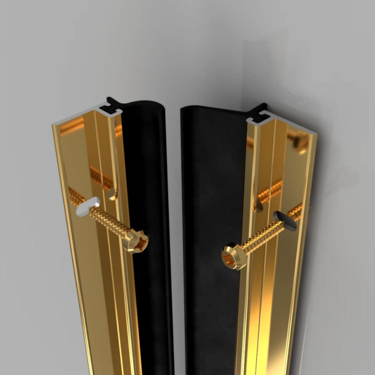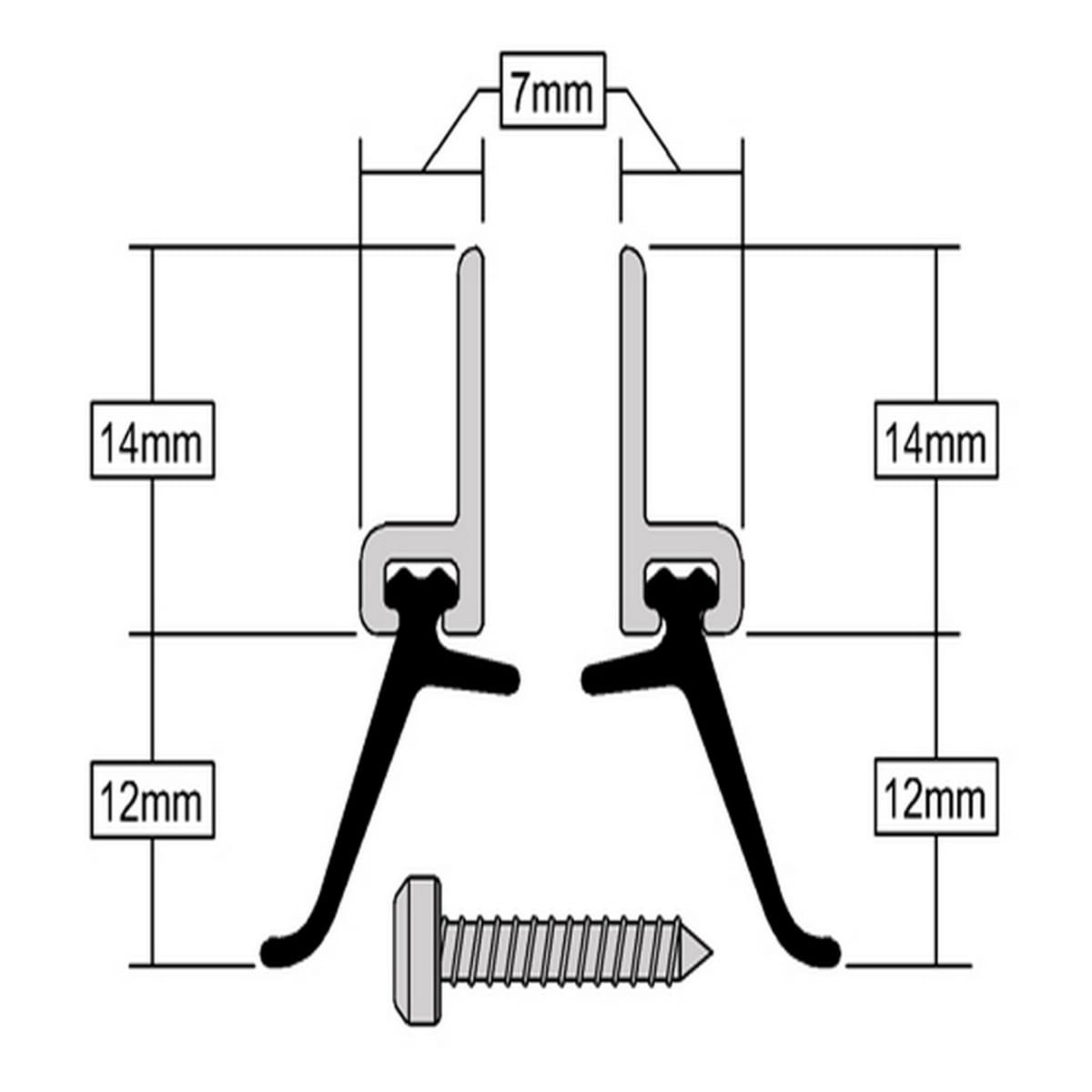 Heavy duty around door seal set with aluminium carrier and nitrile rubber draught proof strips. Seals gaps up to 10mm around inward opening doors to protect against rain and draught intrusion. Wind pressure increases the efficiency of the system. Can be used as a ‘cold smoke seal’. Available in size 2057mm in mill finish aluminium, gold effect finish aluminium and white powder coated finish aluminium with slotted holes for adjustable screw fixing.