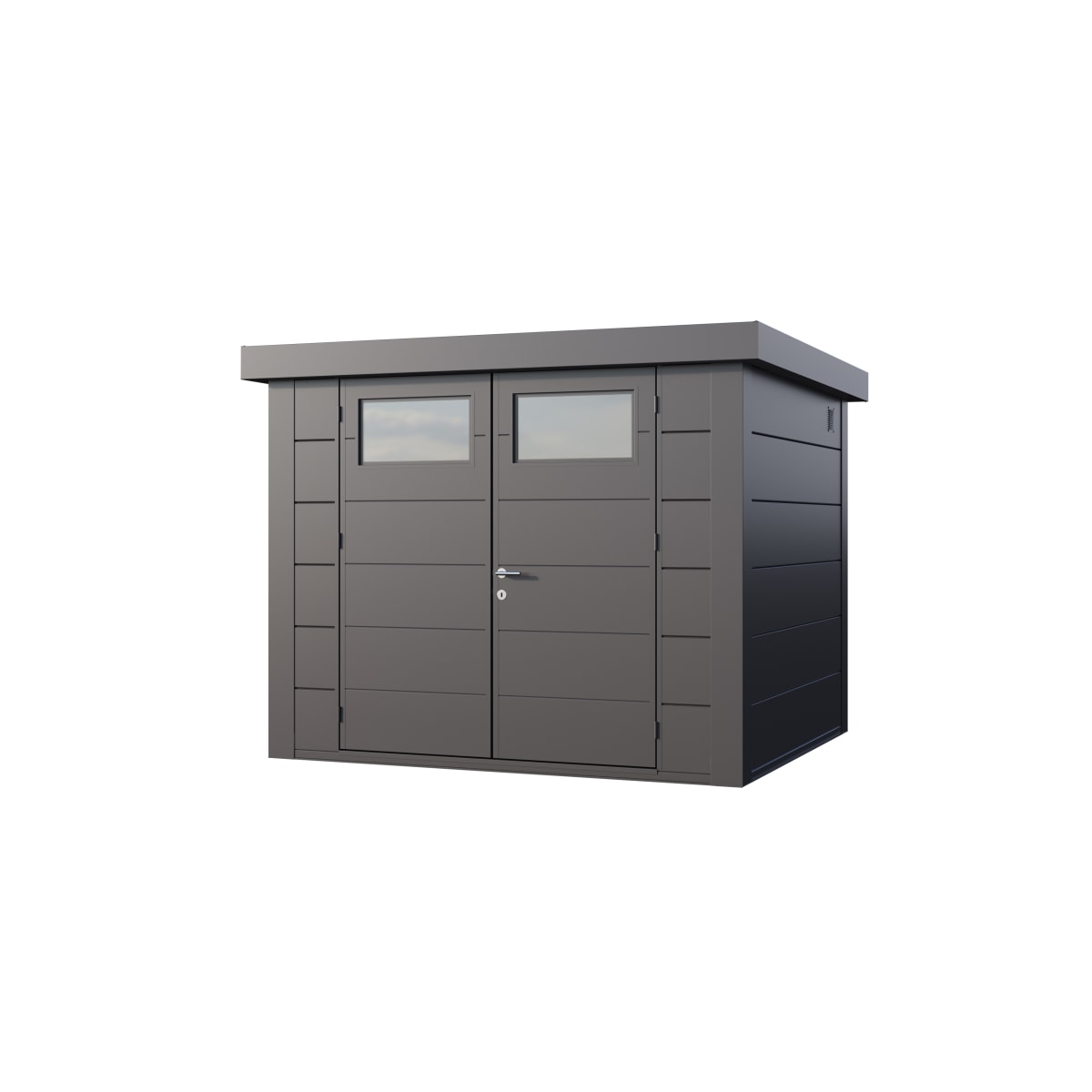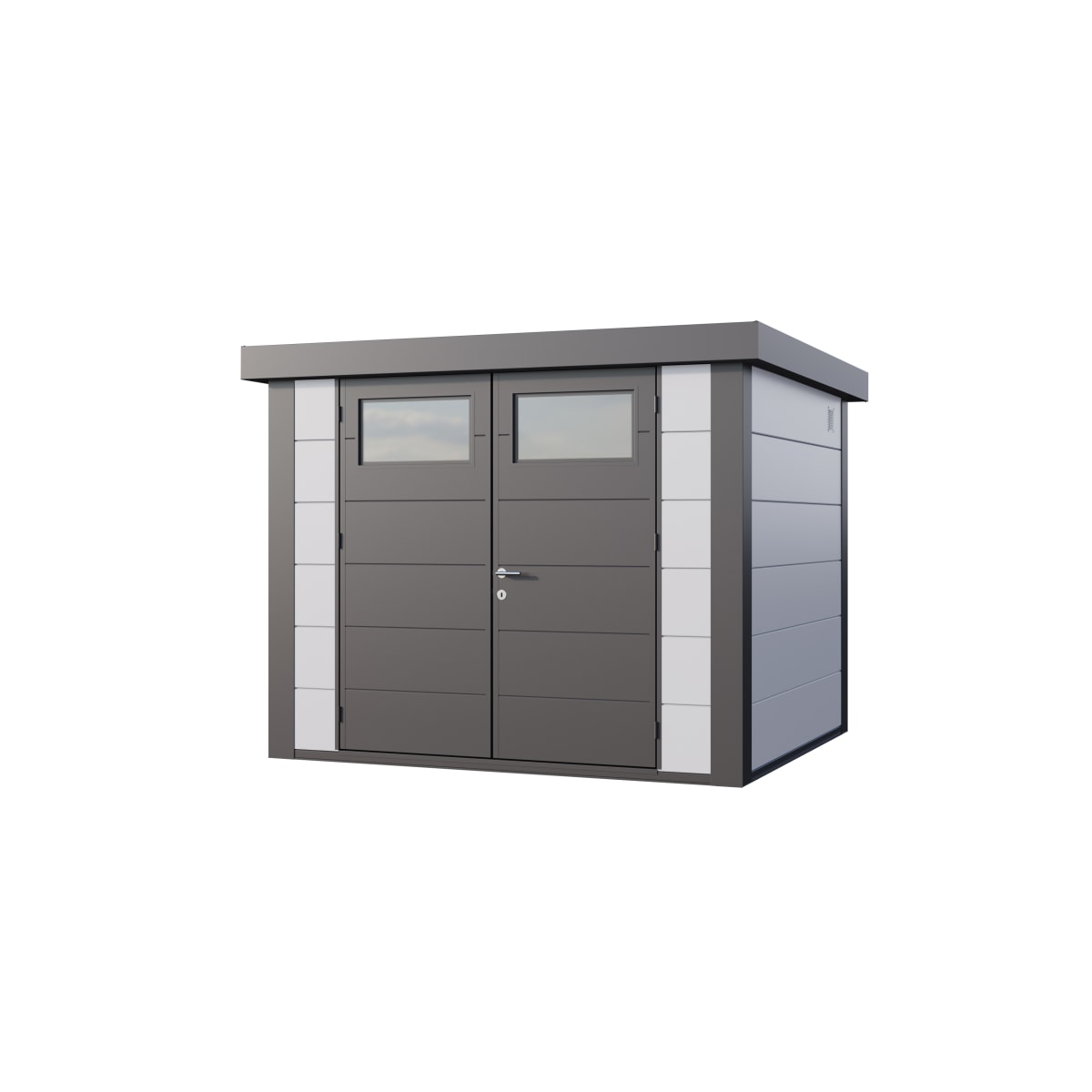 The Telluria Eleganto 2724 Steel Garden Unit offers premium garden storage that is made from .9 steel with maintenance free building and a 20 year warranty.