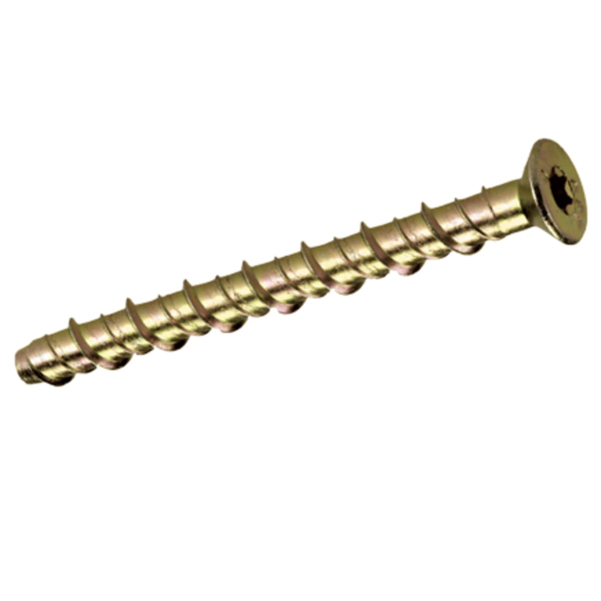 Thunderbolt Countersunk T30 Torx Drive Screws 50 x 6mm (L x Dia) Zinc Yellow Passivated 100 Pieces are self tapping screws with tight friction fit. Threaded action helps achieve safe anchorage. Torx design allows higher torque to be exerted.