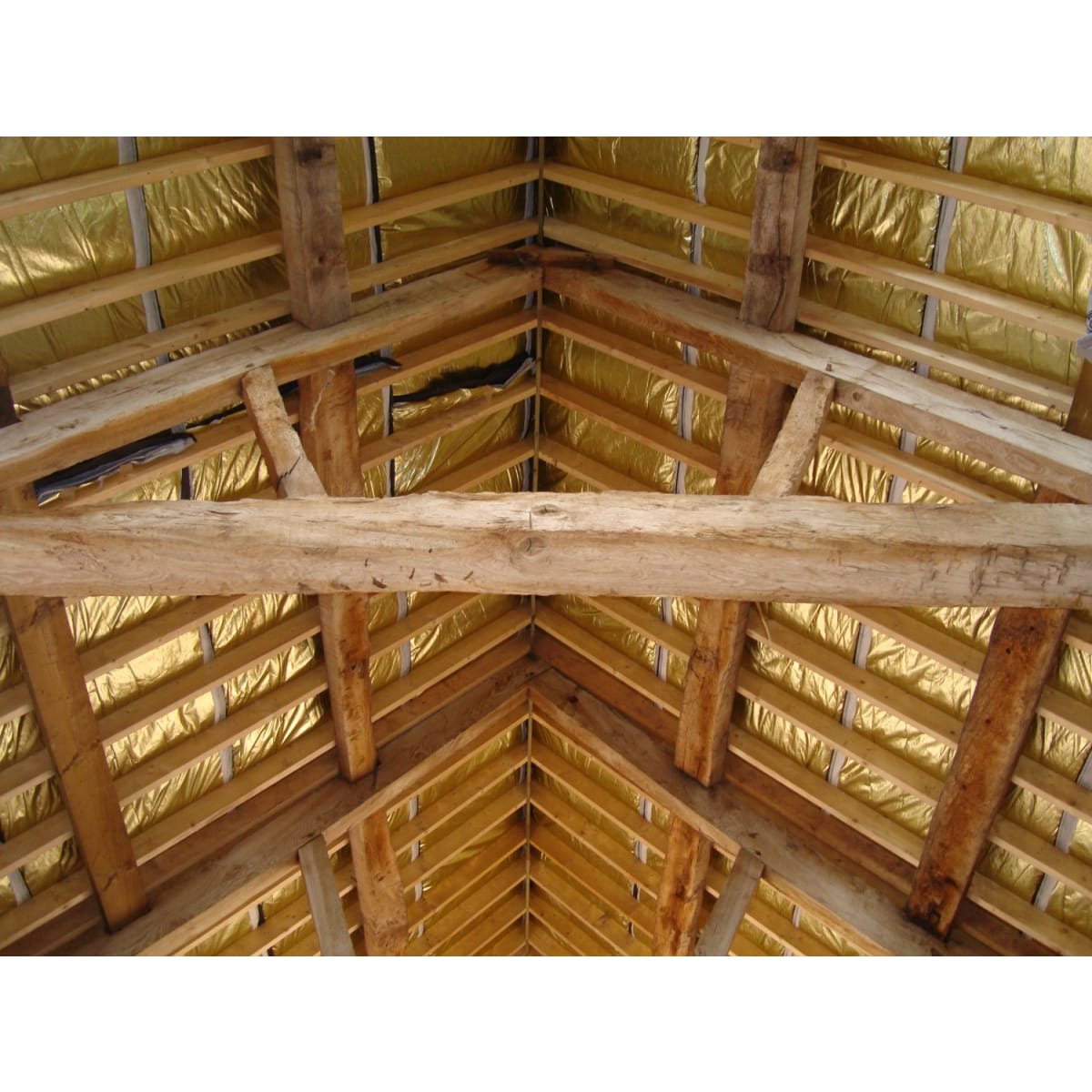 The TLX Thinsulex Multifoil Insulating Breather Membrane 10 x 1200m x 33mm (L x W x T) Gold is a unique all-in-one breathable multi-foil and roofing membrane. It doesn’t require a vapour barrier to avoid condensation. It adjusts its rate of breathability according to the amount of moisture. TLX Gold is completely water and air tight. It is simply rolled out across rafters and can be installed without raising the roof height.