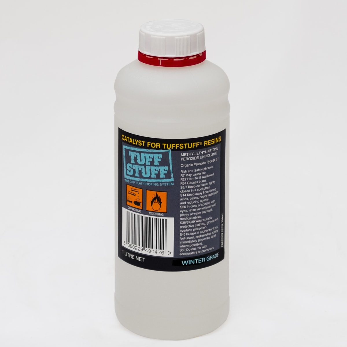 The TuffStuff Catalyst Winter Grade 1L is added to the TuffStuff's resins in order to activate and speed up the curing process. The catalyst ensures that the coats dry properly without being affected by the decreased temperature. It should be used in colder months when the temperature is between 4 and 13 degrees Celsius which ensures a smooth, quality finish regardless of the weather. The use of this catalyst ensures that each stage cures correctly. It is advisable that different quantities of catalyst should be used depending on the external conditions.