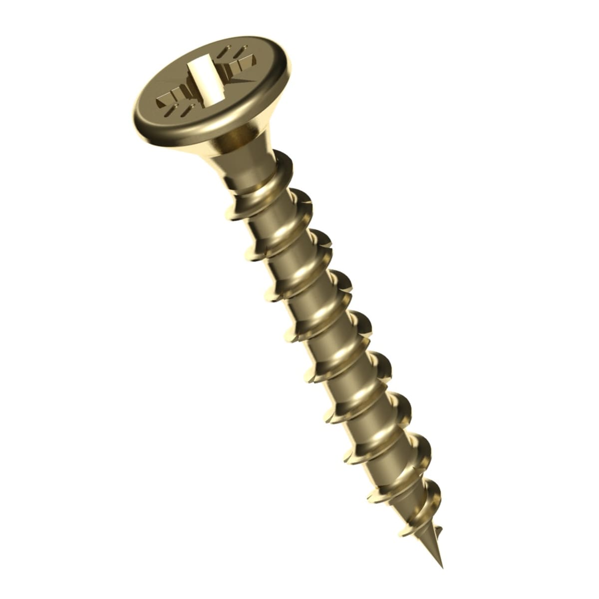 The Ulti-Mate® Wood Screw is a trade-quality, high-performance woodscrew that can be used for fixing hardwood, softwood, man-made timber boards (e.g. MDF, plywood, chipboard & OSB), and sheet metal. The screws feature the patented Stick-Fit drive system that enables stable, wobble-free driving and one-handed installation. A high-quality Stick-Fit driver bit is included in every box of Ulti-Mate Wood Screws. The screws also feature a wax lubricant coating for low-torque insertion , a double-angle countersunk head for a neat finish and a wide, deep single thread for rapid insertion and strong holding power.