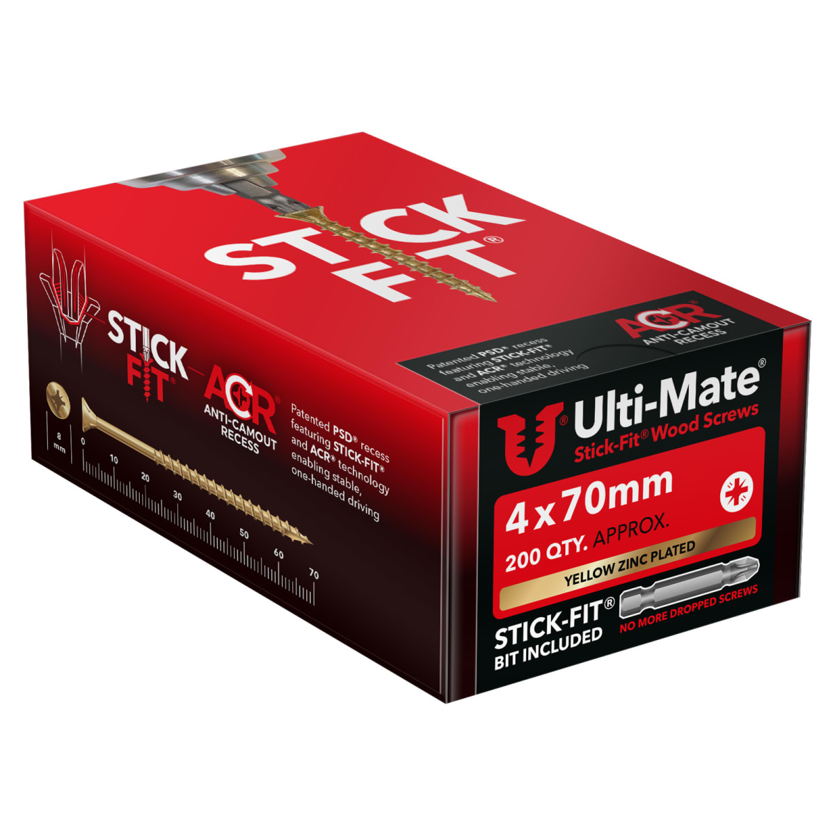 | Product Name | Ulti-Mate® Stick-Fit Woodscrews - 4.0 x 70mm Box 200 |