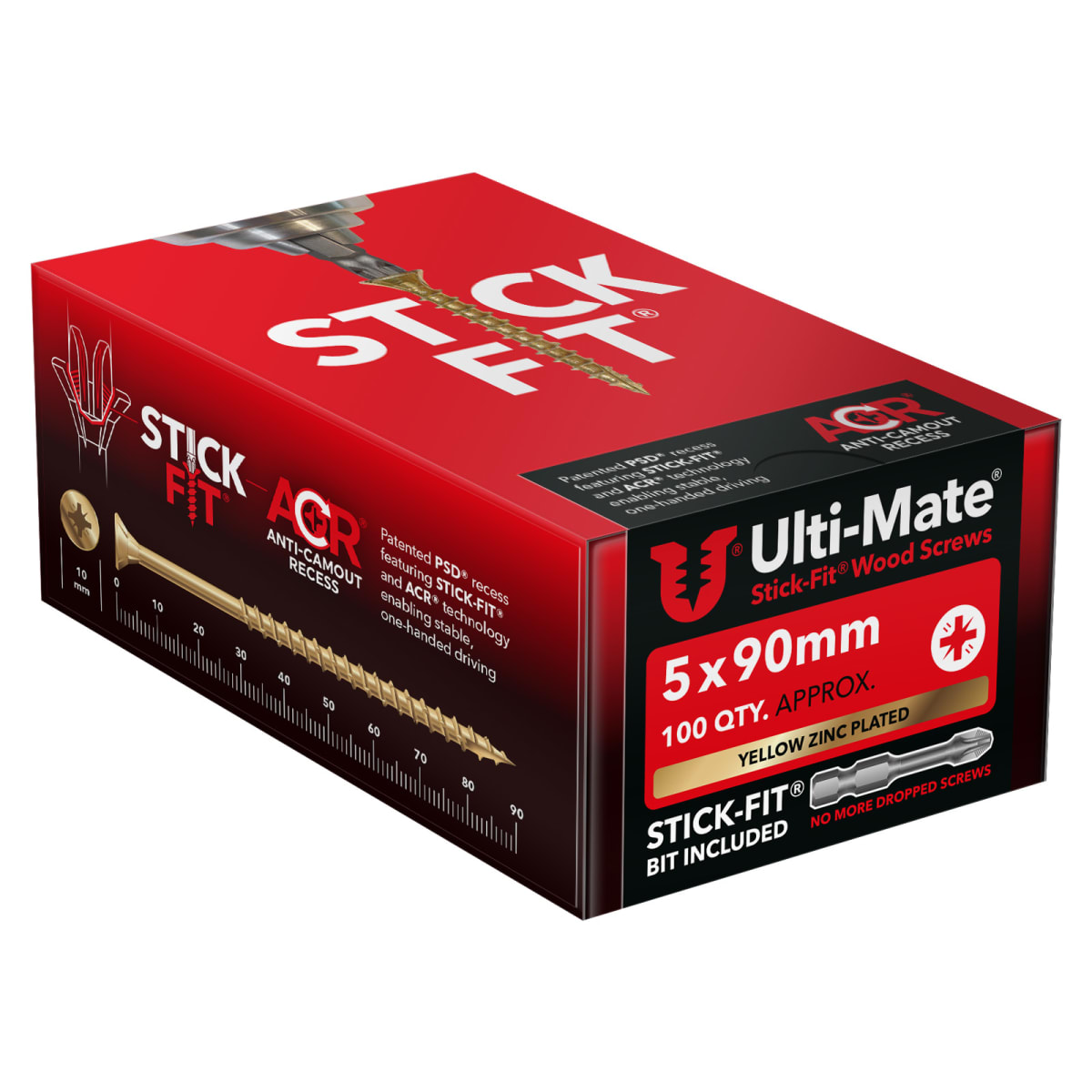 Ulti-Mate® Stick-Fit Woodscrews - 5.0 x 90mm Box 100