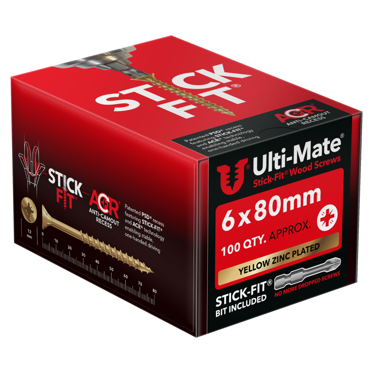 | Product Name | Ulti-Mate® Stick-Fit Woodscrews - 6.0 x 80mm Box 100 |