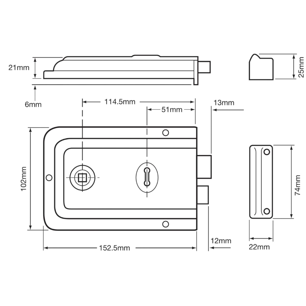 Lever rim lock suitable for timber doors up to 50mm thick, hinged on the left or right opening inwards only, and steel and composite doors (special fixings required). the deadbolt is locked or unlocked by key from either side and the latch bolt is withdrawn by knob from either side