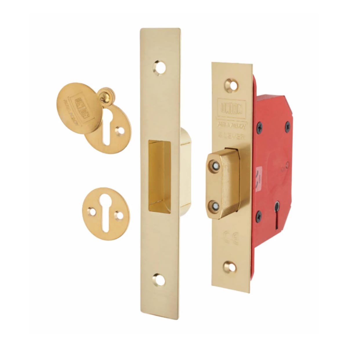 | Product Name | Union 2105 StrongBOLT 5 Lever Mortice Deadlock 68mm Polished Brass |