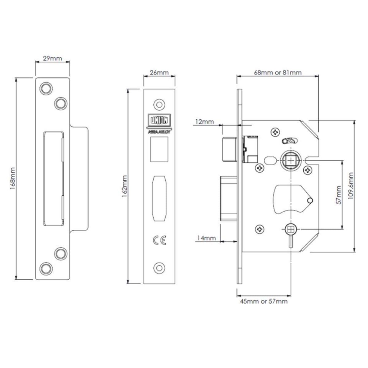 | Product Name | Union 22EU StrongBolt Mortice Bathroom Lock 81mm Stainless Steel |