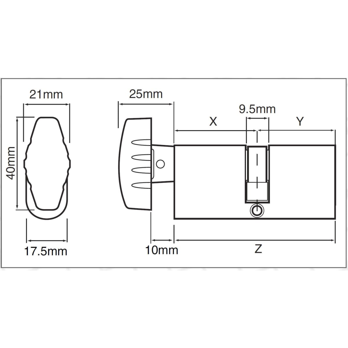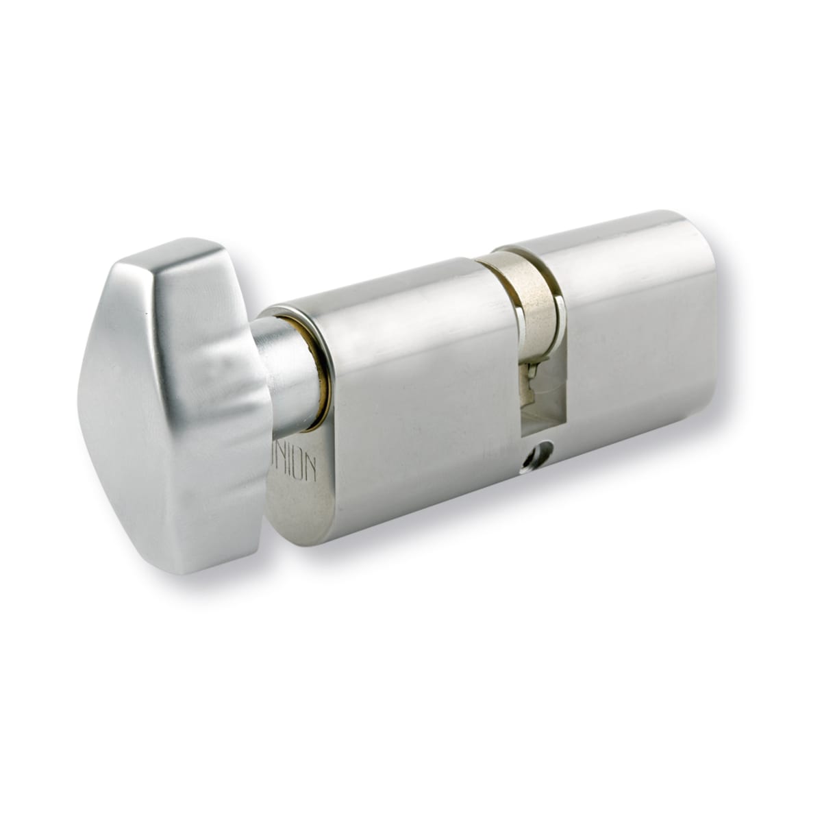 Union Turn Oval Profile Cylinder Satin Chrome is an oval profile key and turn cylinder with diamond shape turn, It can be locked and unlocked by turning. The single thumb-turn cylinder is a convenient everyday locking solution that offers a standard level of security. It is operated from the exterior side of the door by a key and from the interior side of the door by a knob.