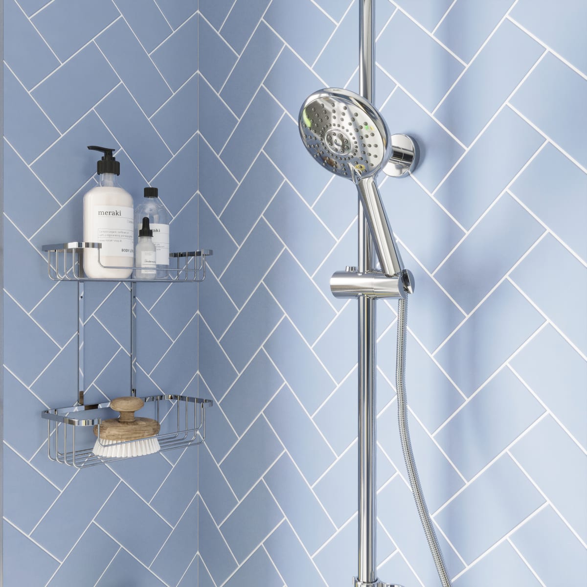 - Chrome five function shower handset
