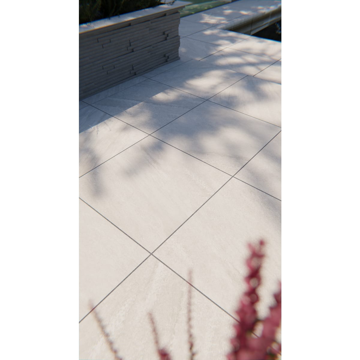 Pearl is a stunning shade of light grey porcelain slabs, so bright they are almost white. These paving slabs feature a unique and distinct pattern, blending shades of white and grey to create the appearance of natural stone.