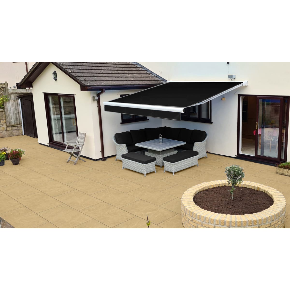 Vitripiazza Bellstone Kreme Porcelain Paving 1200 x 600x 20mm with rectified edges that have been machine cut after firing, giving a consistent size with 90 degree angles allowing for minimal joint widths and crisp lines.