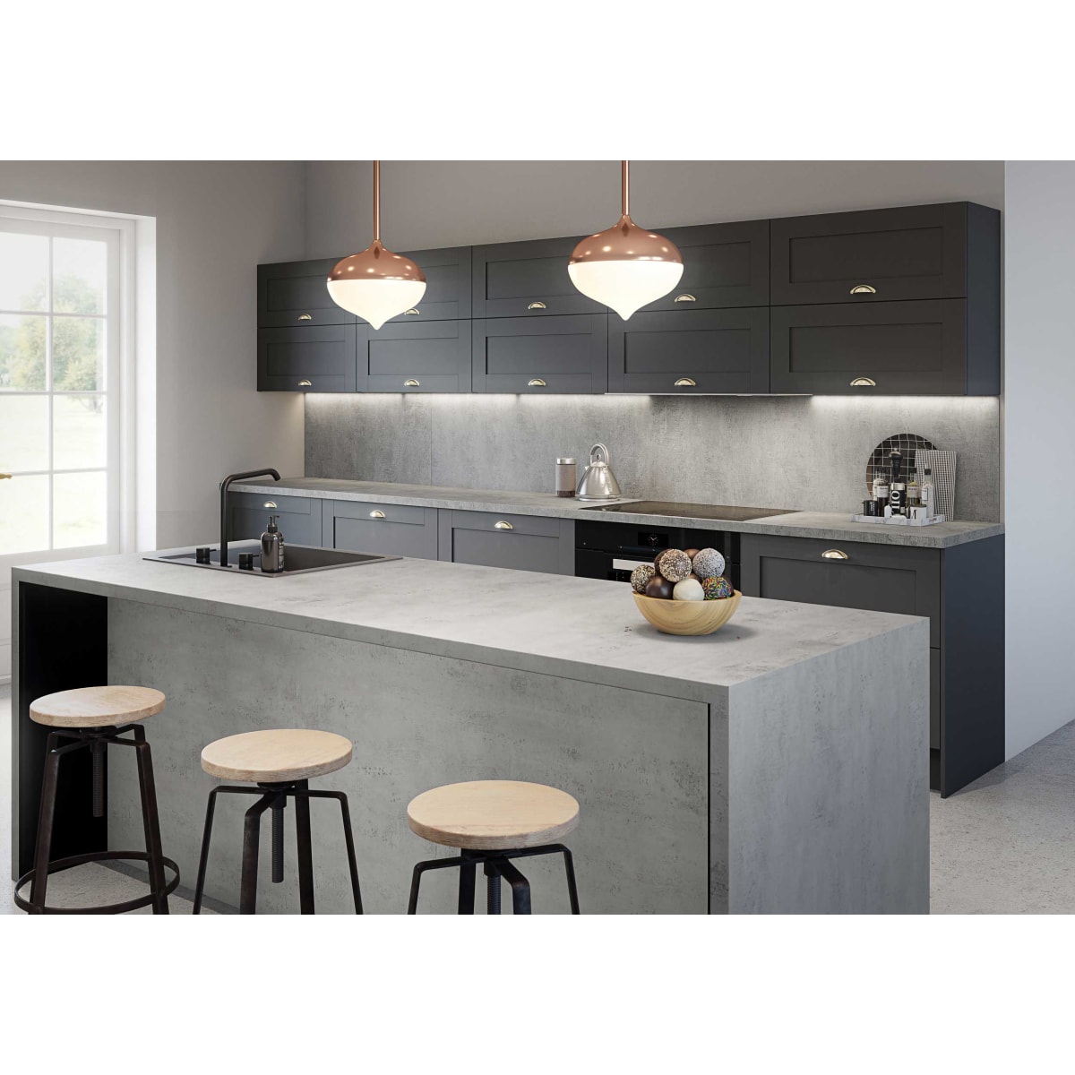 Complete the Zenith Woodstone Grey compact laminate look with a complementary splashback. The stone-like effect works well in any kitchen. A splashback creates a neat finish and protects kitchen paintwork. With an MDF core and laminate on both sides, it is designed to go straight on the wall with no need for grout or complicated preparation. Simply measure, cut and adhere to the wall with Bushboard Complete Adhesive. Splashbacks are a straightforward style statement that are easy to keep clean. Please note: Splashbacks should not be fitted directly behind a gas hob without additional protection. For other hob types, please refer to the hob manufacturer's guidelines to ensure that your installation complies with safety standards.